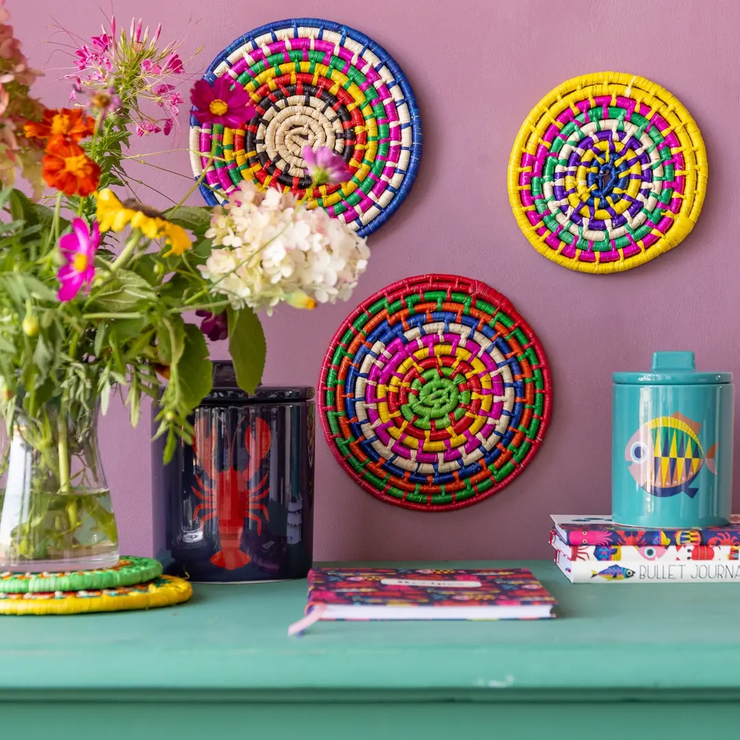 Door decoratief servies te gebruiken, worden maaltijden speciaal. Creëer een kitscherige ervaring door opvallende en leuke onderzetters, placemats en servetten te gebruiken. Of hang kleurrijke onderzetters creatief op de muur voor een speelse decoratie.