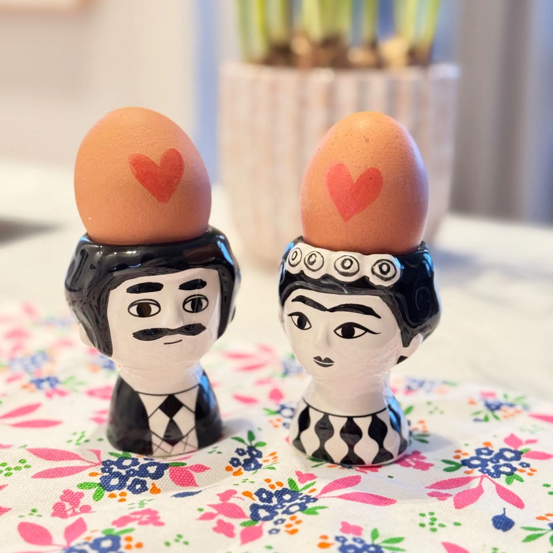 Voeg persoonlijkheid toe aan uw kleurrijke keukendecoratie met eigenzinnige vintage-geïnspireerde items. De charmante Ingela Arrhenius eierdoppen & vazen. van Kitsch Kitchen zijn perfecte voorbeelden. Hun speelse karakters brengen unieke charme en persoonlijkheid in uw keuken. Versterk hun effect door verse seizoensbloemen, kunstbloemen of zelfs legobloemen aan de vazen toe te voegen.