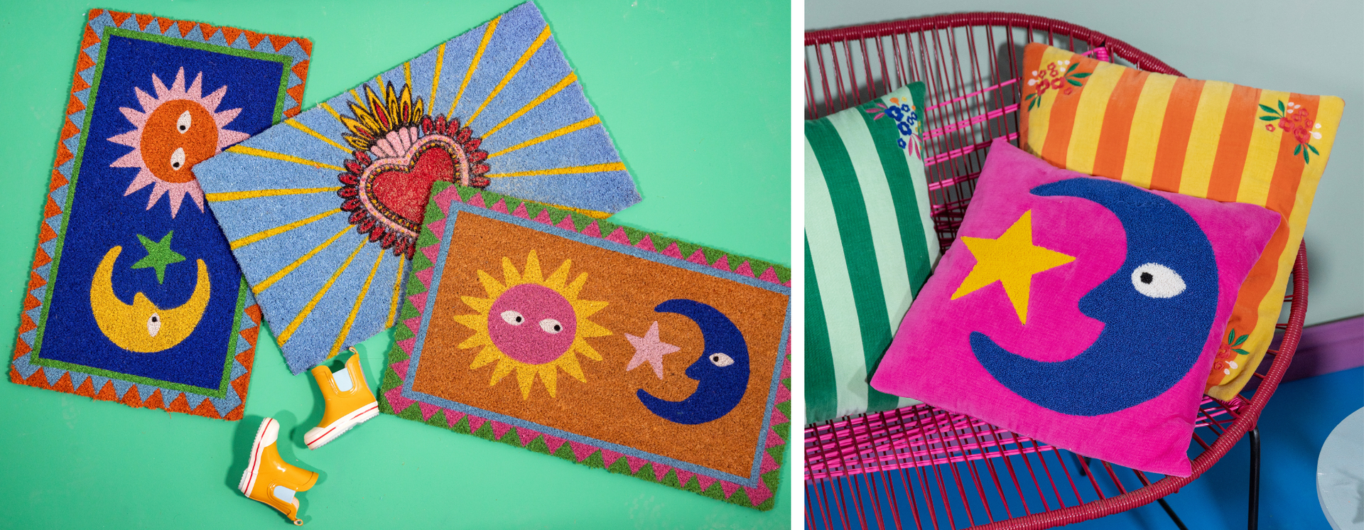 Our Loteria collection features colorful items with illustrations from the famous Mexican Loteria game. Loteria is a traditional Mexican game of chance, similar to bingo. Instead of numbers, the cards – also known as tablas – contain images of animals, objects, and characters. These playful illustrations are reflected in various items such as velvet photo frames, coasters, cushions, doormats, candle holders, and vases..